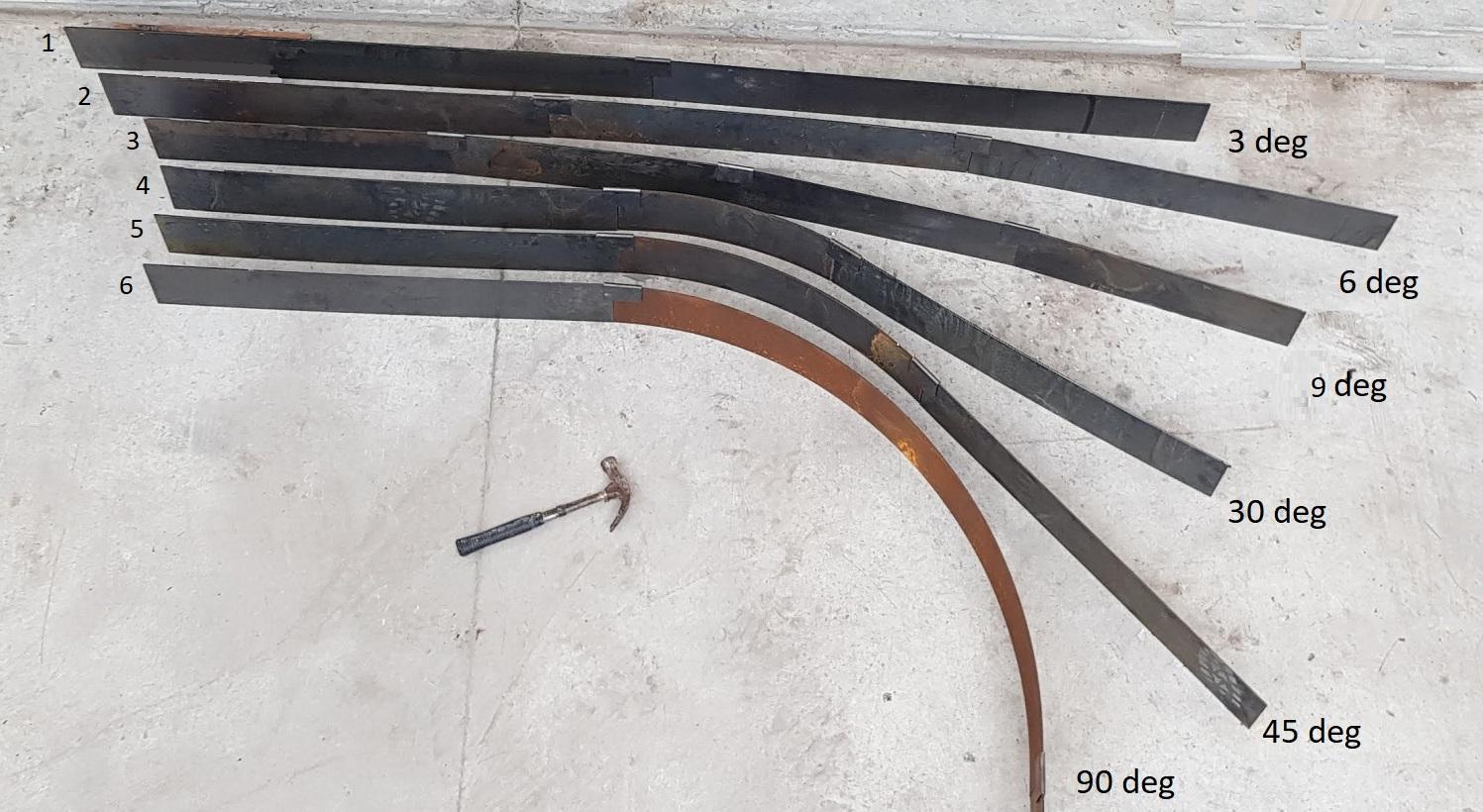 3/ You can use a hammer to put a slight bend in the straight sections. This will add add another 2-5 degrees of curve to each section of edging. Hammering at the centre gives a slight bend, if you hammer at the quarter points you will get a greater curve in the corten plate steel.