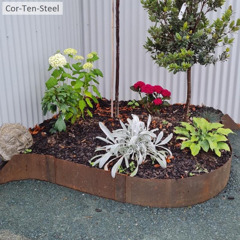 Corten steel edging comes in 150mm, 200mm, 300mm heights. Peg/clip joiner system allows you to easily reconfigure you garden edging layout.