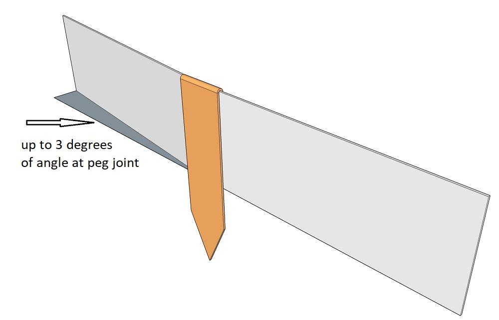2/ 3 off 900mm straight + 2 pegs = 6 degrees of curve