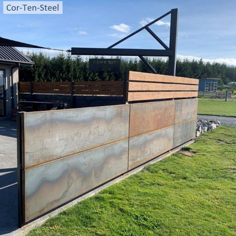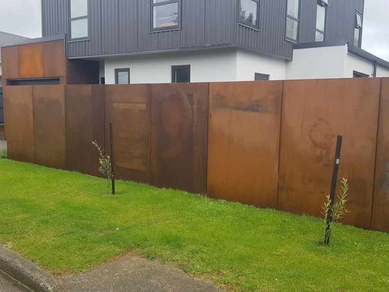 Corten fence and retaining walls. The retaining walls need good drainage behind them