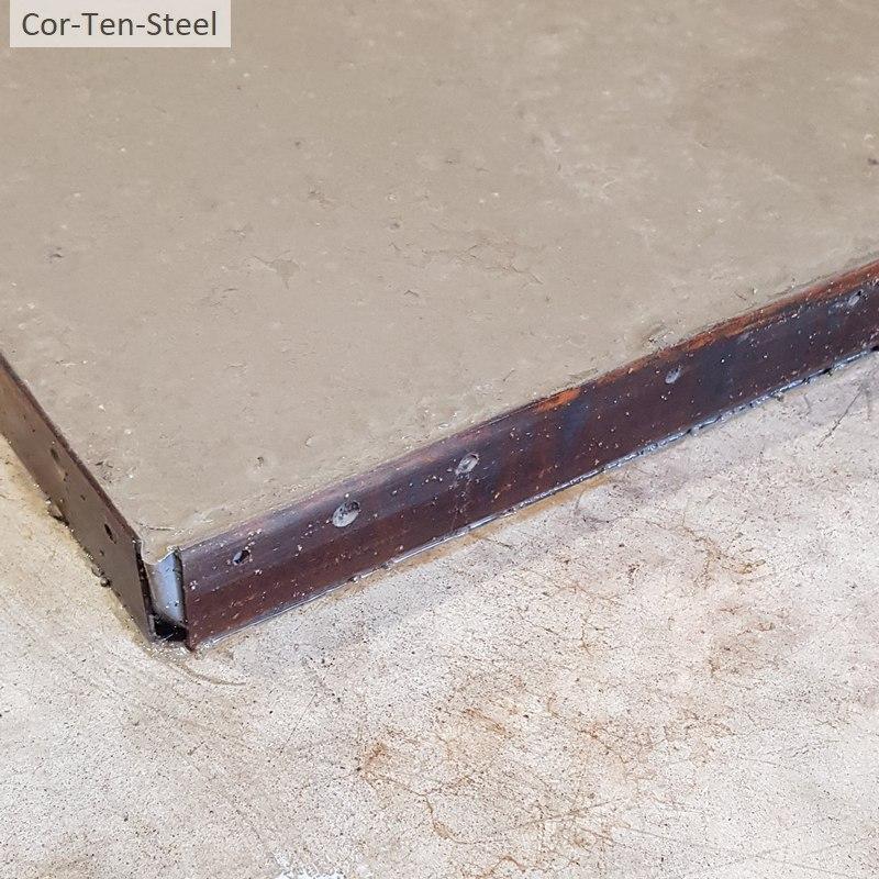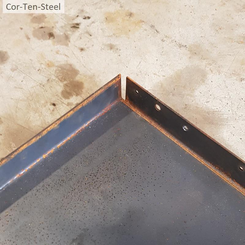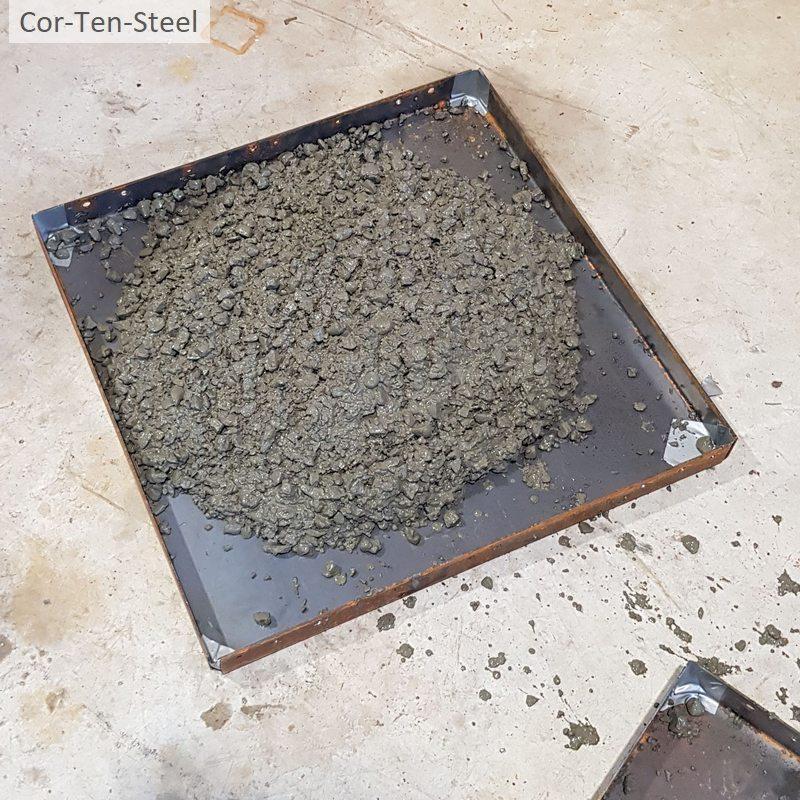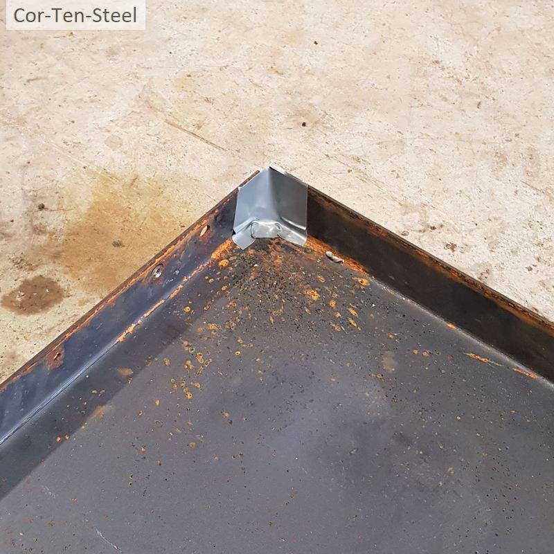 Corten steel panel corner needs to be taped up prior to adding concrete