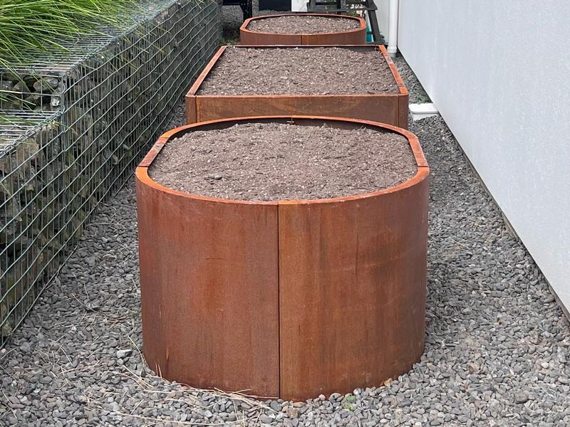 Check out our Corten Steel planters for a modern look. These planters are perfect for any space.