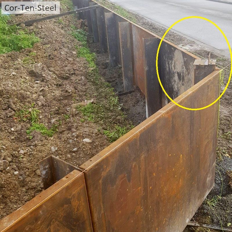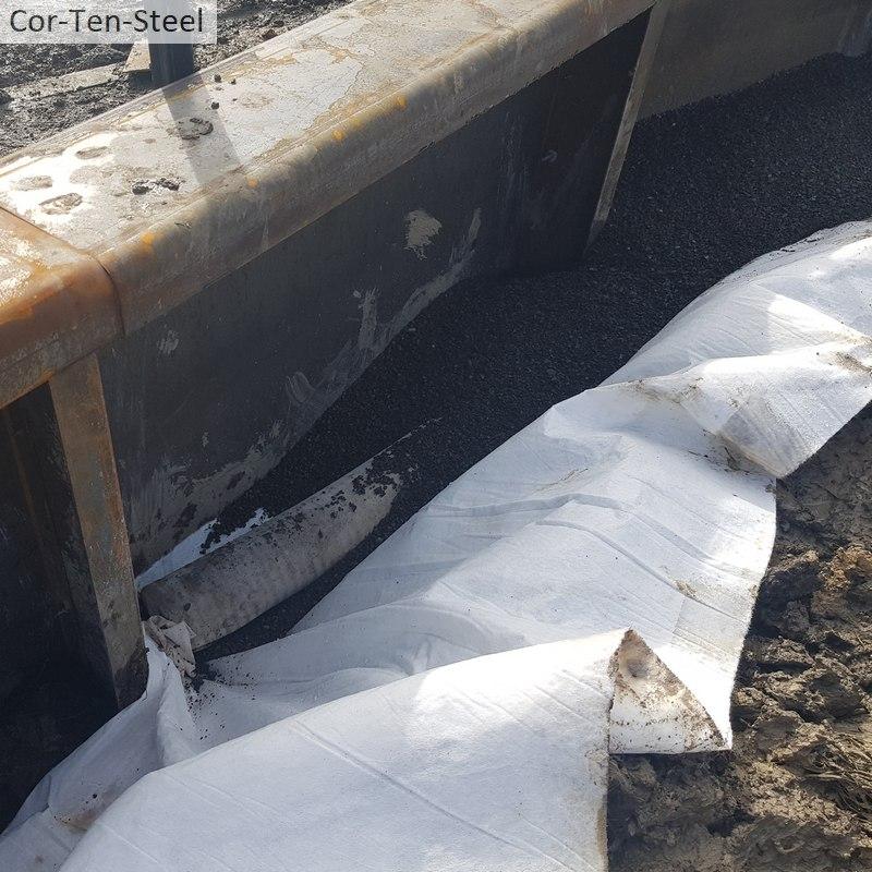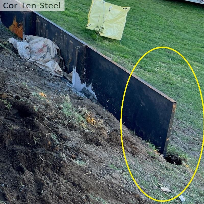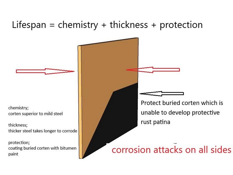 Protecting the buried portion of Corten steel is crucial. Above ground, it forms a protective patina through repeated wetting and drying cycles over many months. However, buried sections may remain constantly moist, preventing this patina from forming. Applying a bitumen coating to the buried parts of the wall, creates a waterproof barrier, stopping corrosion and ensuring the corten retaining wall achieves its intended long lifespan.