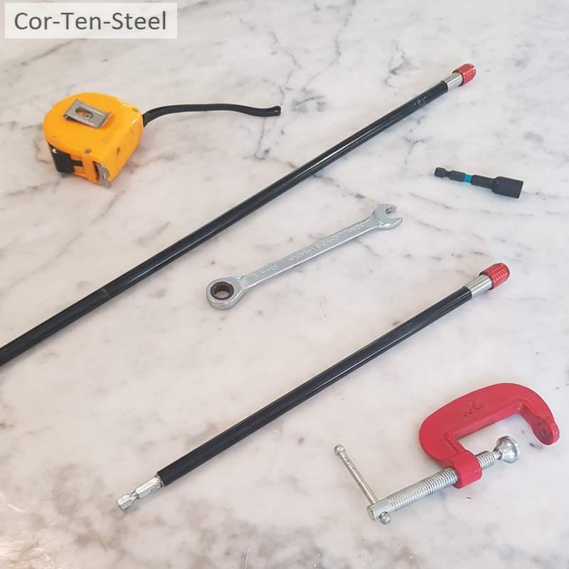 5/16th” (7.9mm) Nut driver Variable speed drill G clamps Ratchet spanner Tape measure Drill extension bar (optional)