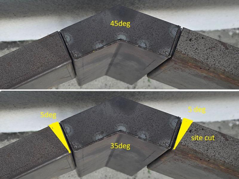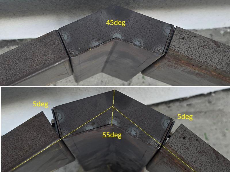 The side folds can be site bent to create a 5deg to 10deg additional change in direction This allows the installer to cope with angels that are not exactly 45deg or 90deg
